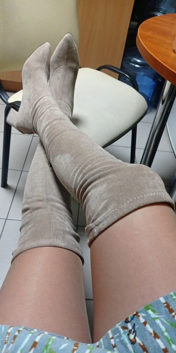 Boots liked, though prickly, it is interesting how long they will live, but I do not imagine how I will go into them on the street. The elastic band behind is made strange, because of it, the boots stick on the leg, the glue on the sole. For its price is not bad. Came quickly, less than a month.