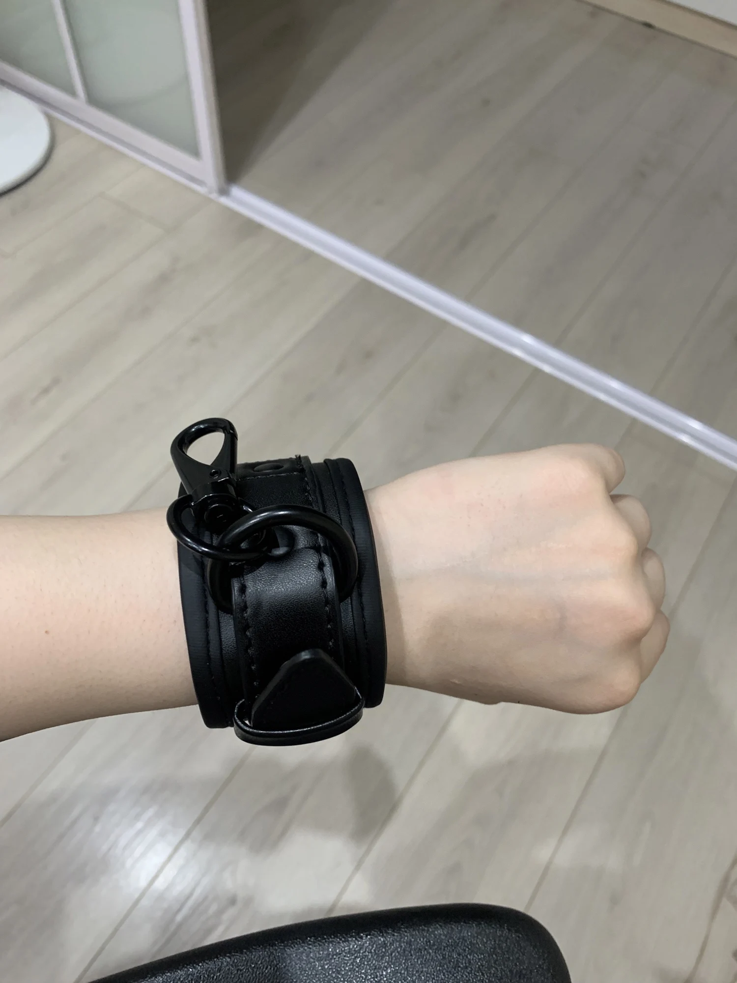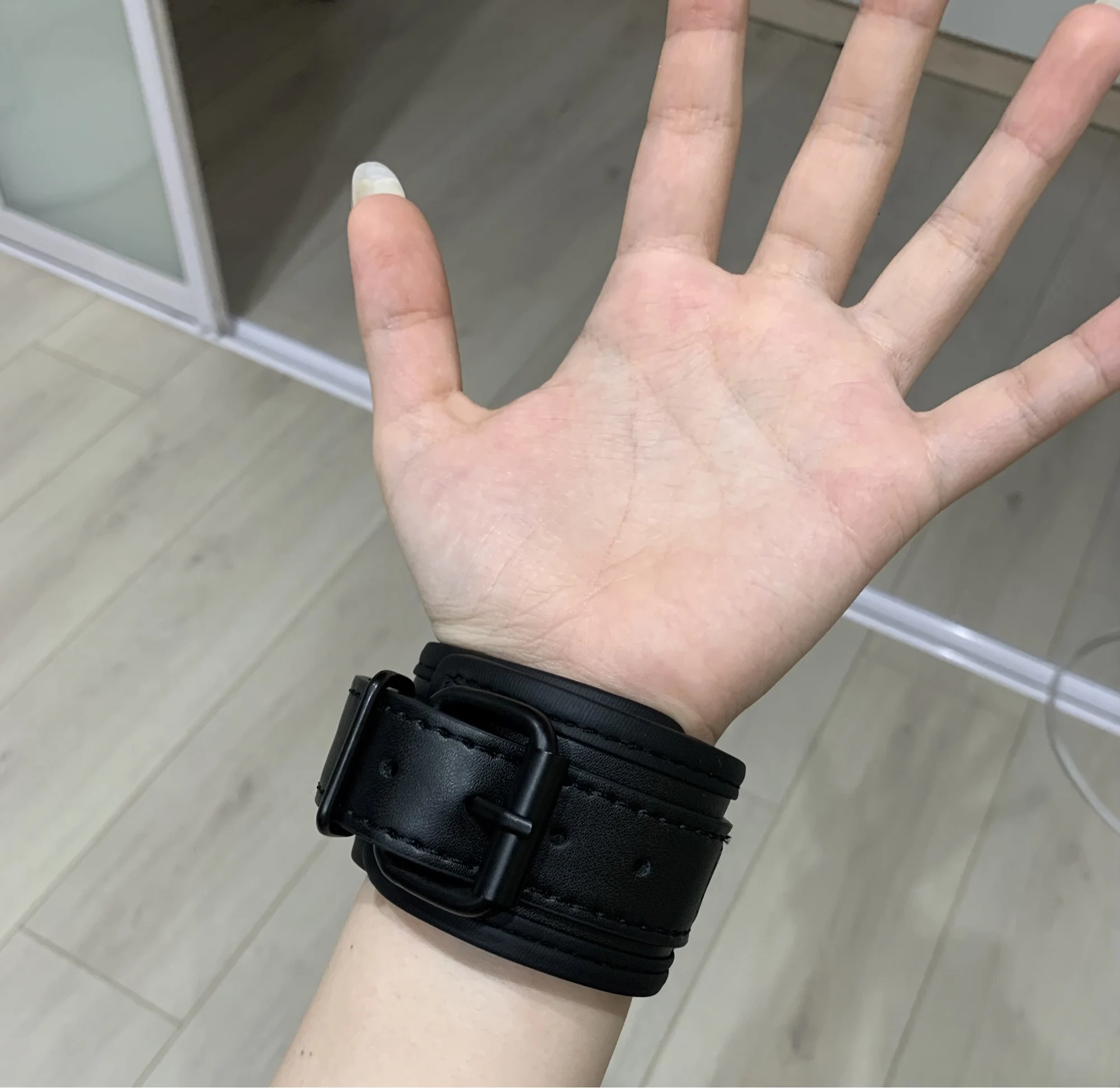 Leather handcuffs, heavy. well made. even a little big on my hand.