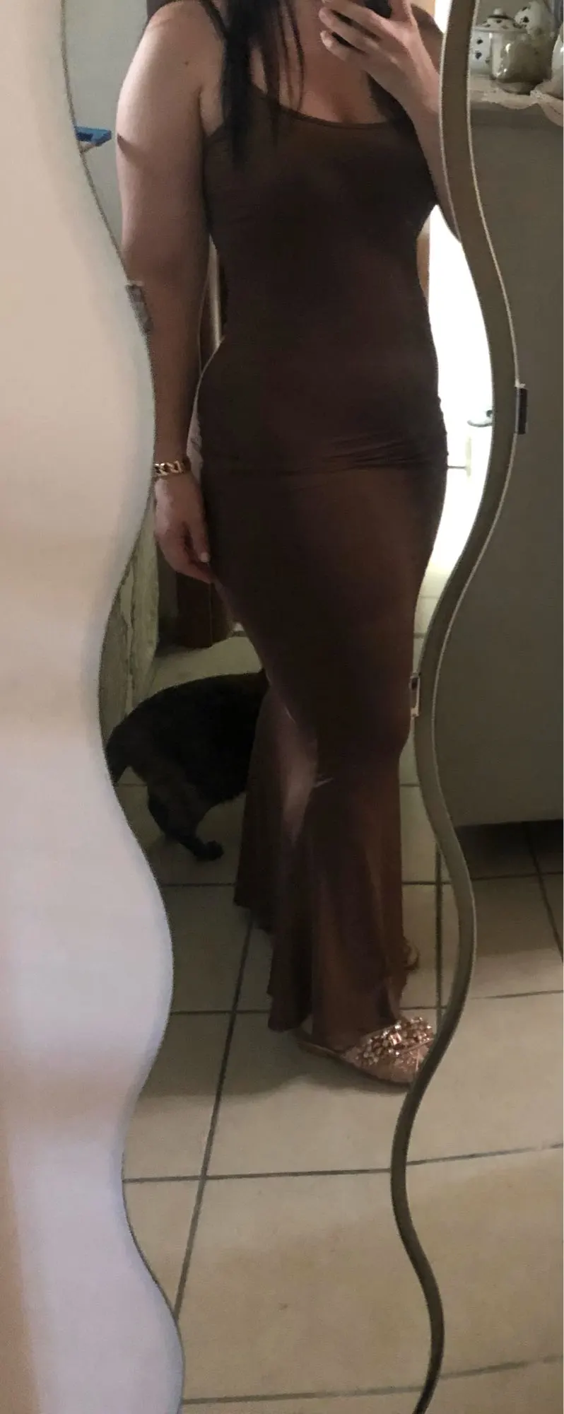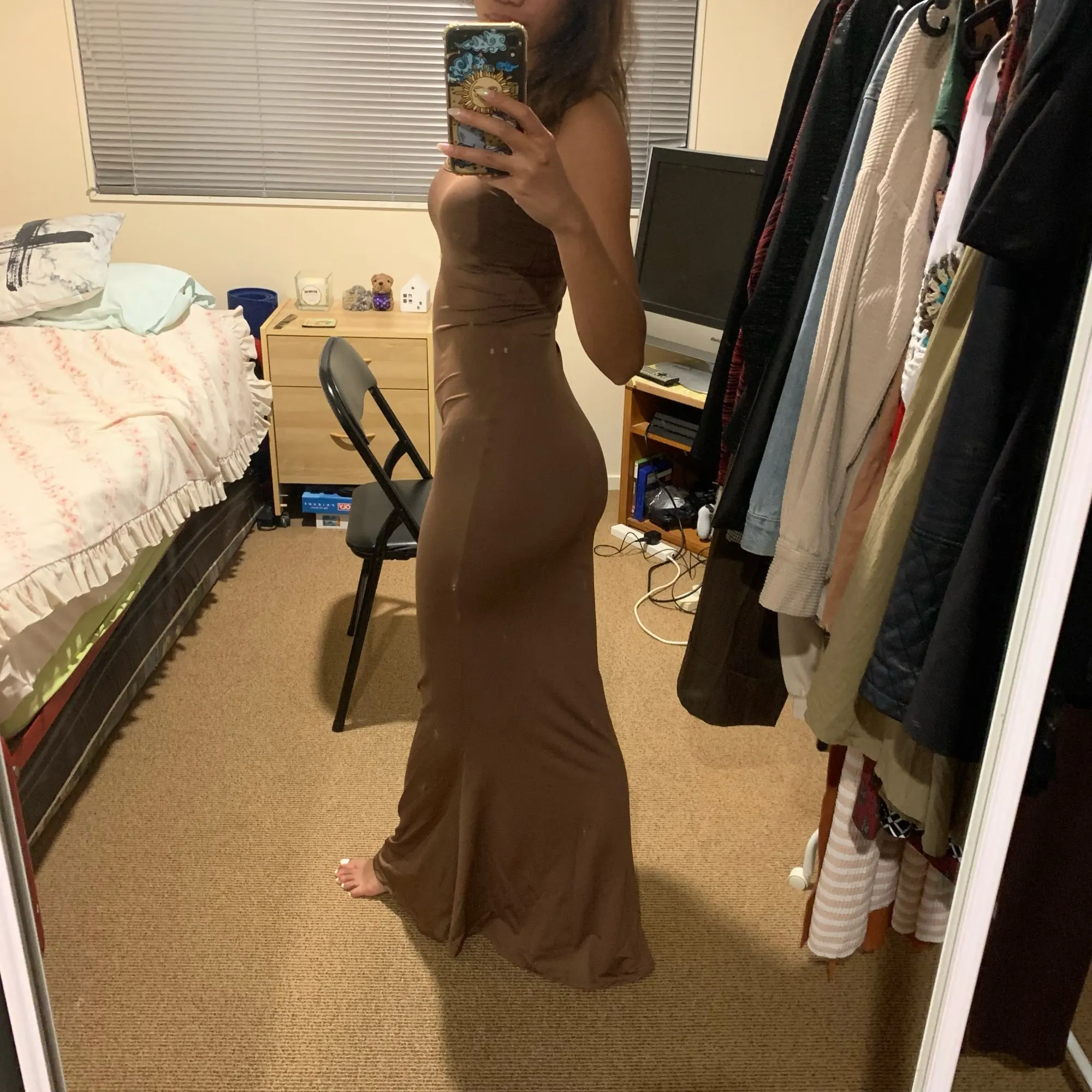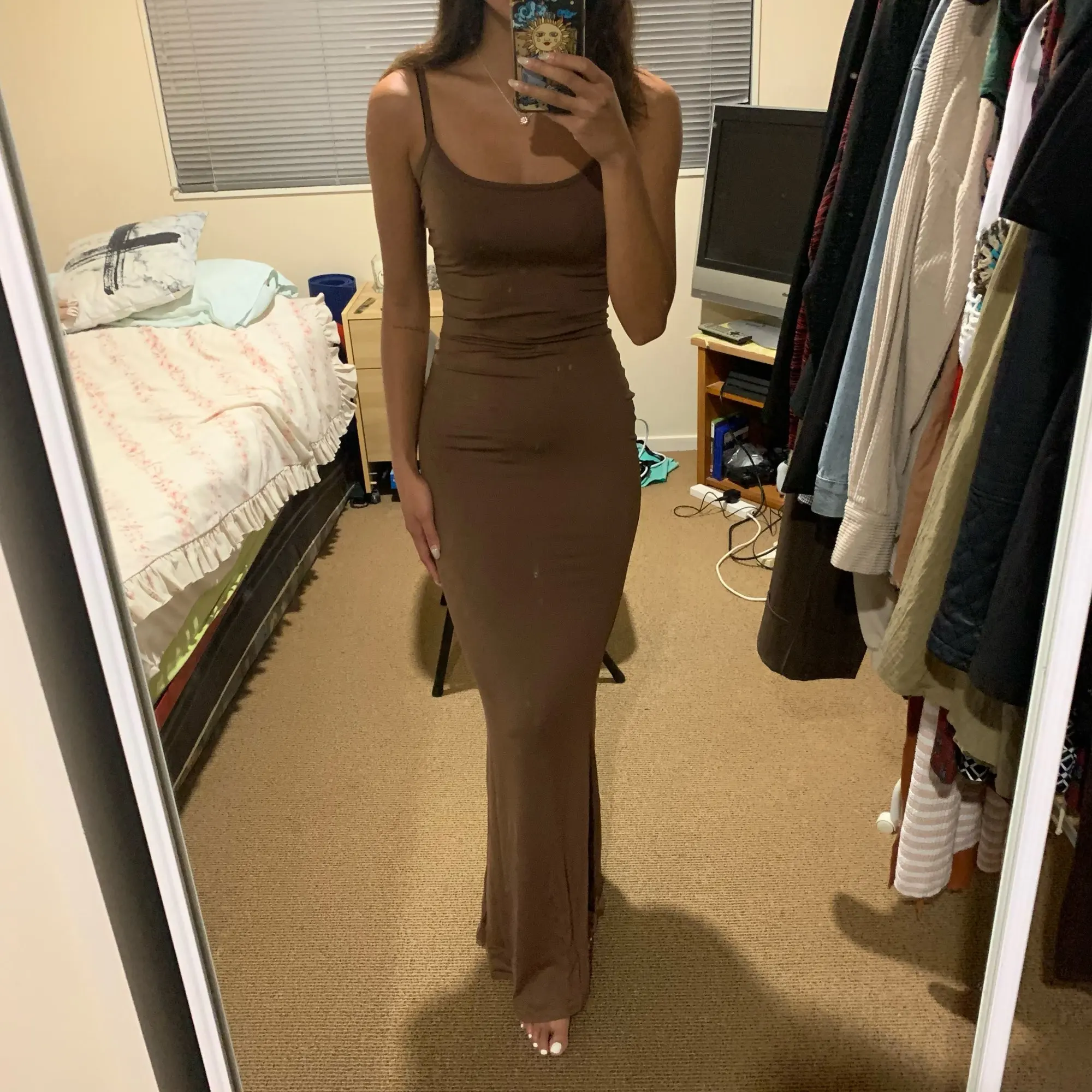 This dress is PERFECT, I am in love. I’m a UK size 8/10 & I am 5’10, the dress is long enough for me & fits like a glove. I got a size S