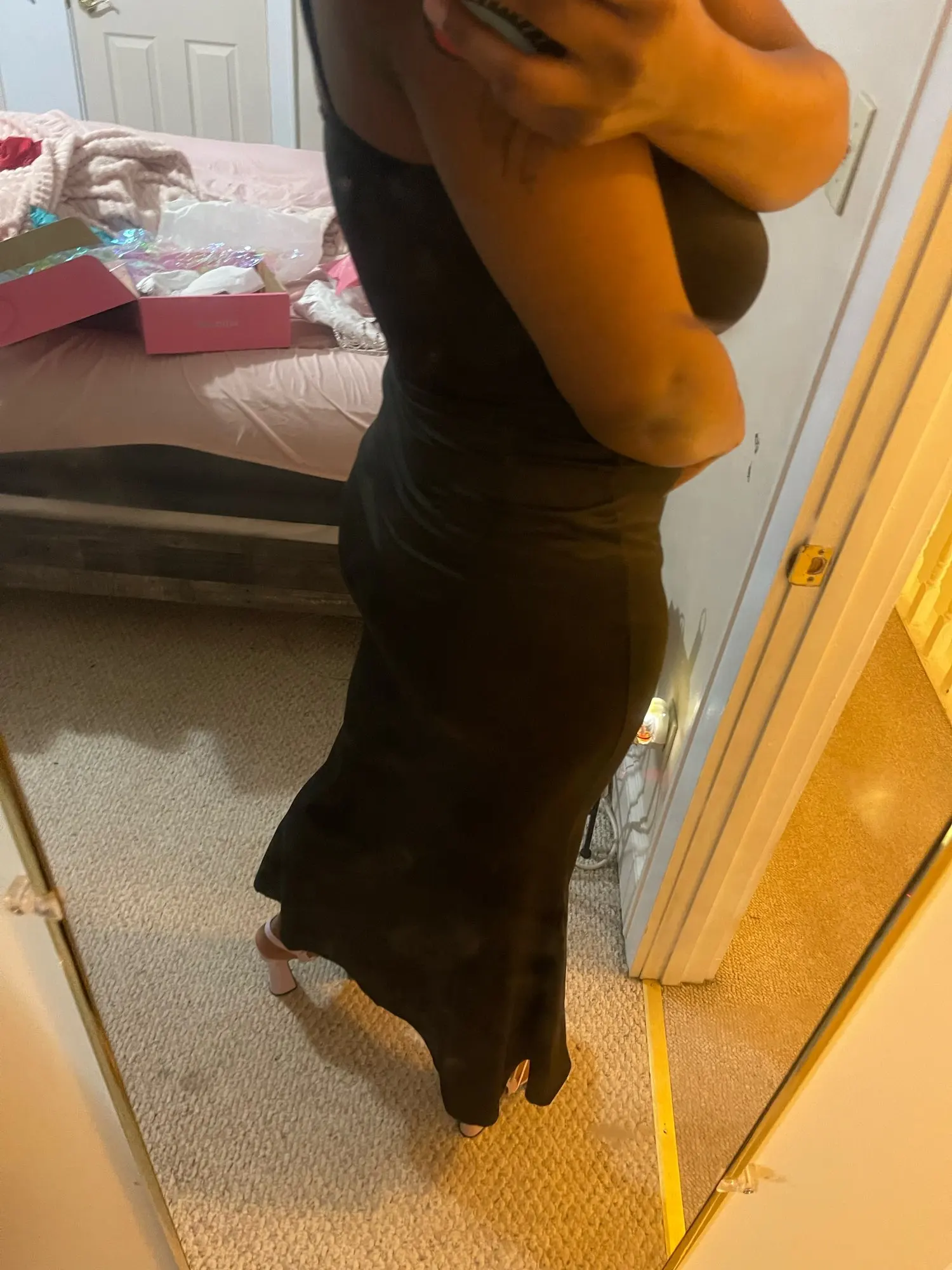 I love this dress the material is really nice and it sits so well on me. Definitely a good buy. Also came a few days early which was great cause I need it for my birthday