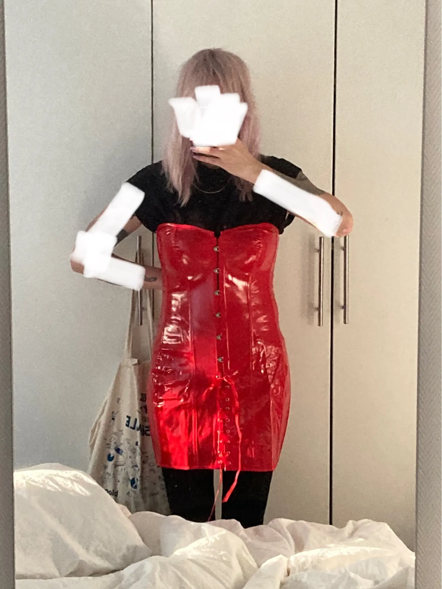 Like some of the other reviews, the dress is a bit short, but that is okay as it shows of my naughty bits a little and that makes everyone more excited. Very high quality. Arrived fast.