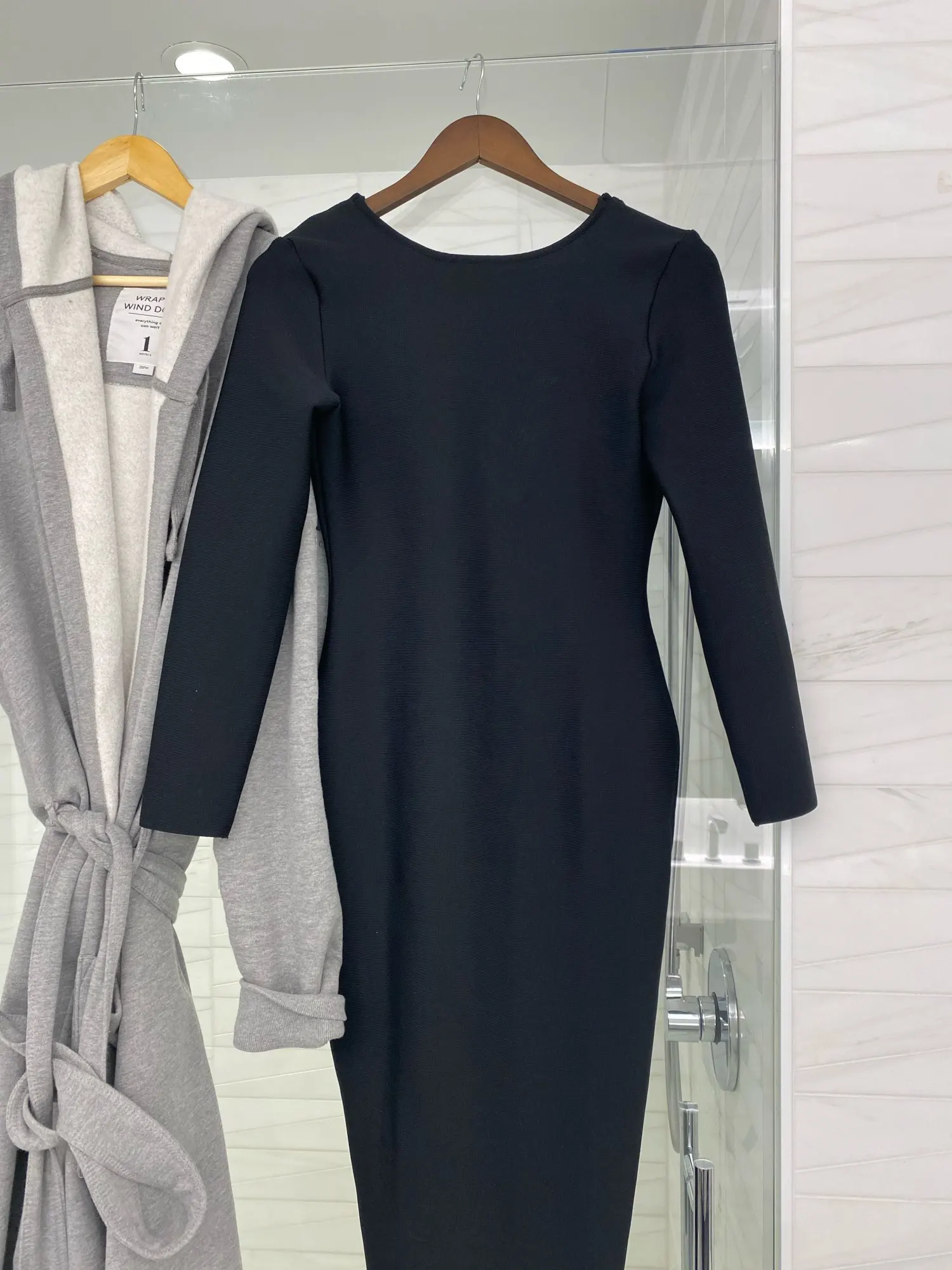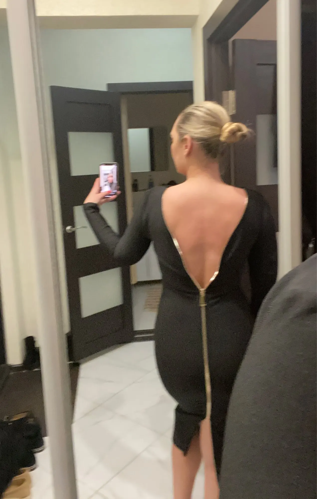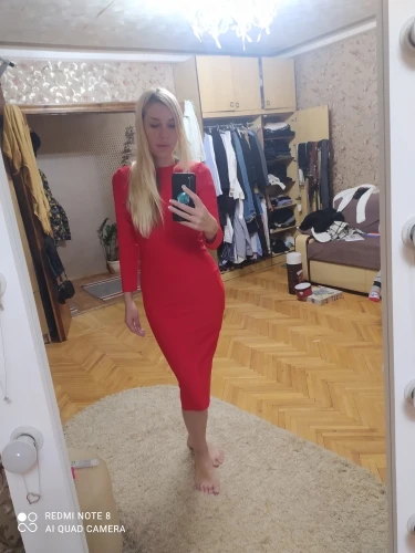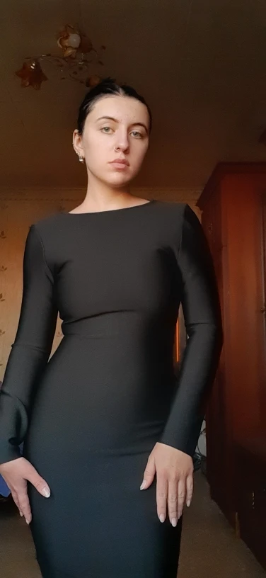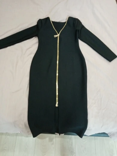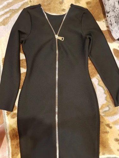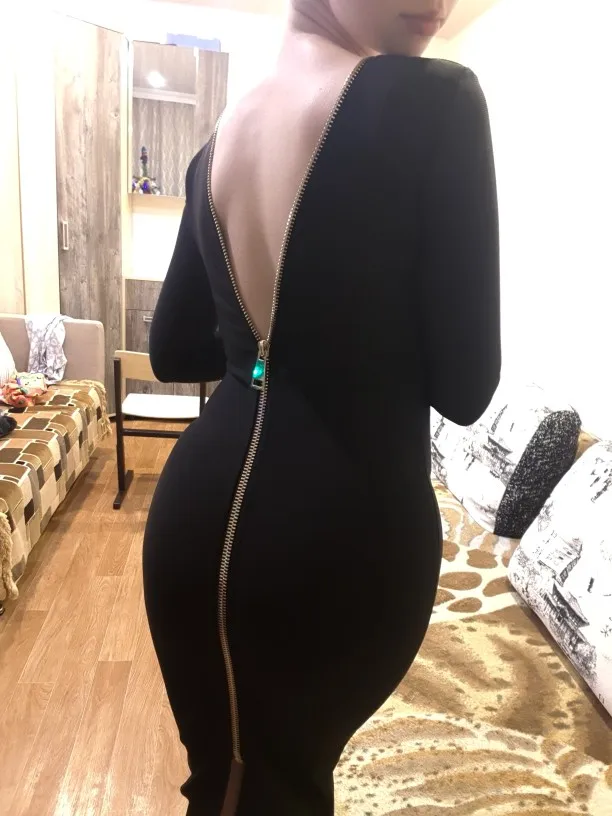 Dress Chic, bomb, icon In size took M, on the parameters of the breast-90, waist-70, hip-101. I chose between M and L, it’s good that I did not take L, I would drown in it. In front it seems strict, I will not say that it is evening, but the back seems so festive, sexy, Bombay It seems simple, but the back turns into an unusual dress with a highlight! The cut is such that it is not straight, but already sewn with a small waist and large hips, which gives the silhouette to the figure. Lightning is large, heavy. I did not expect to honestly say this quality The seams are excellent, even. The quality of the fabric is at + height. Remained a little lose weight and very chic will be!)
