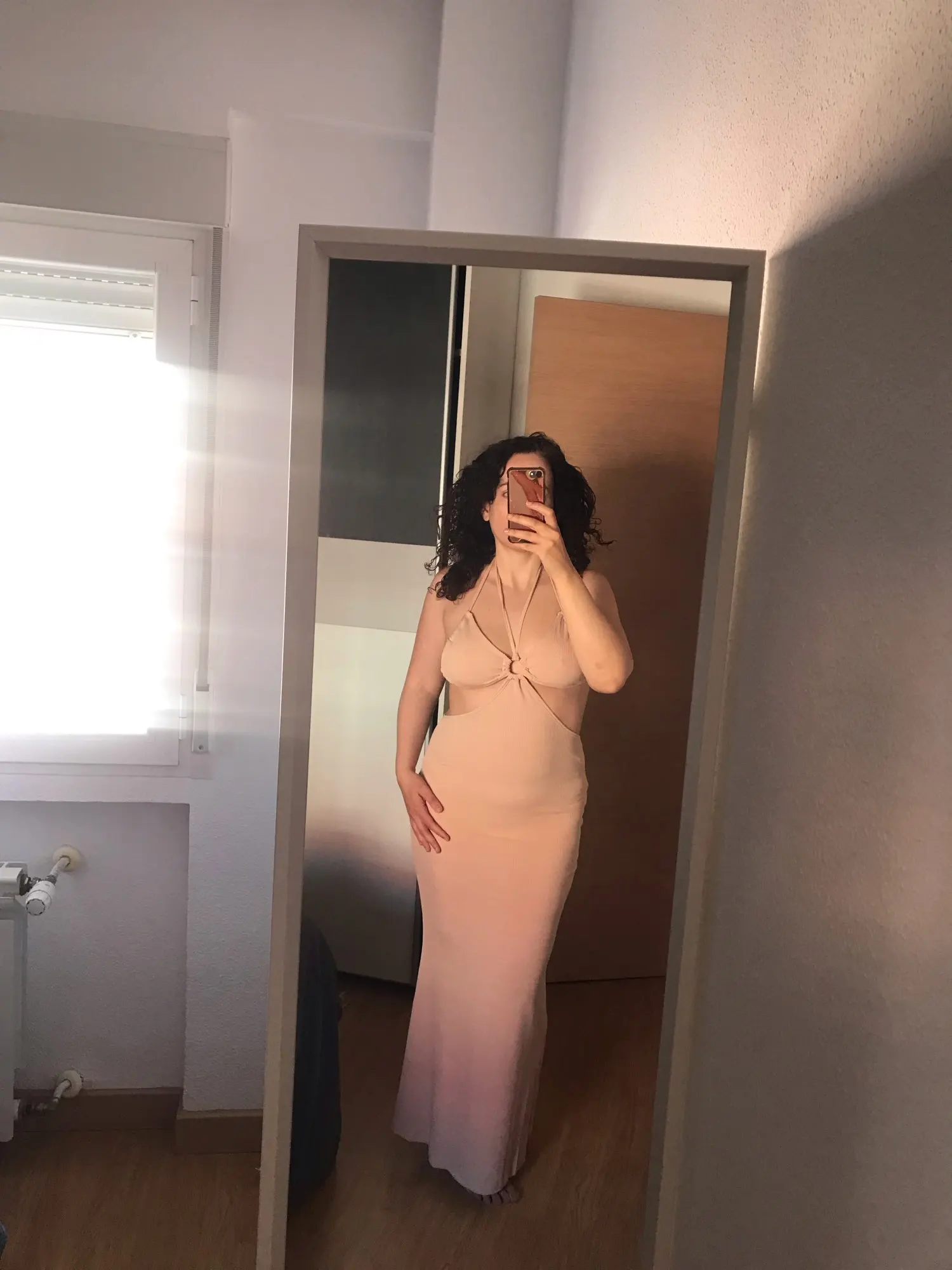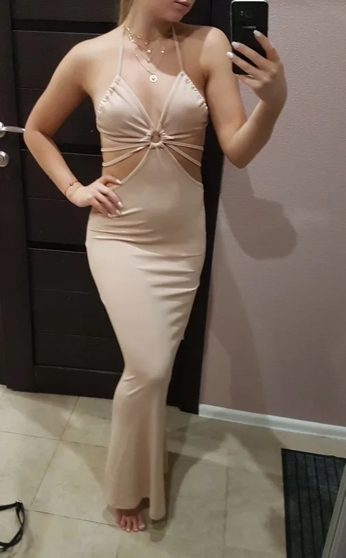 A beautiful summer dress, synthetics, but pleasant to the body. For such a dress you need an ideal figure of course. But I really like it.
