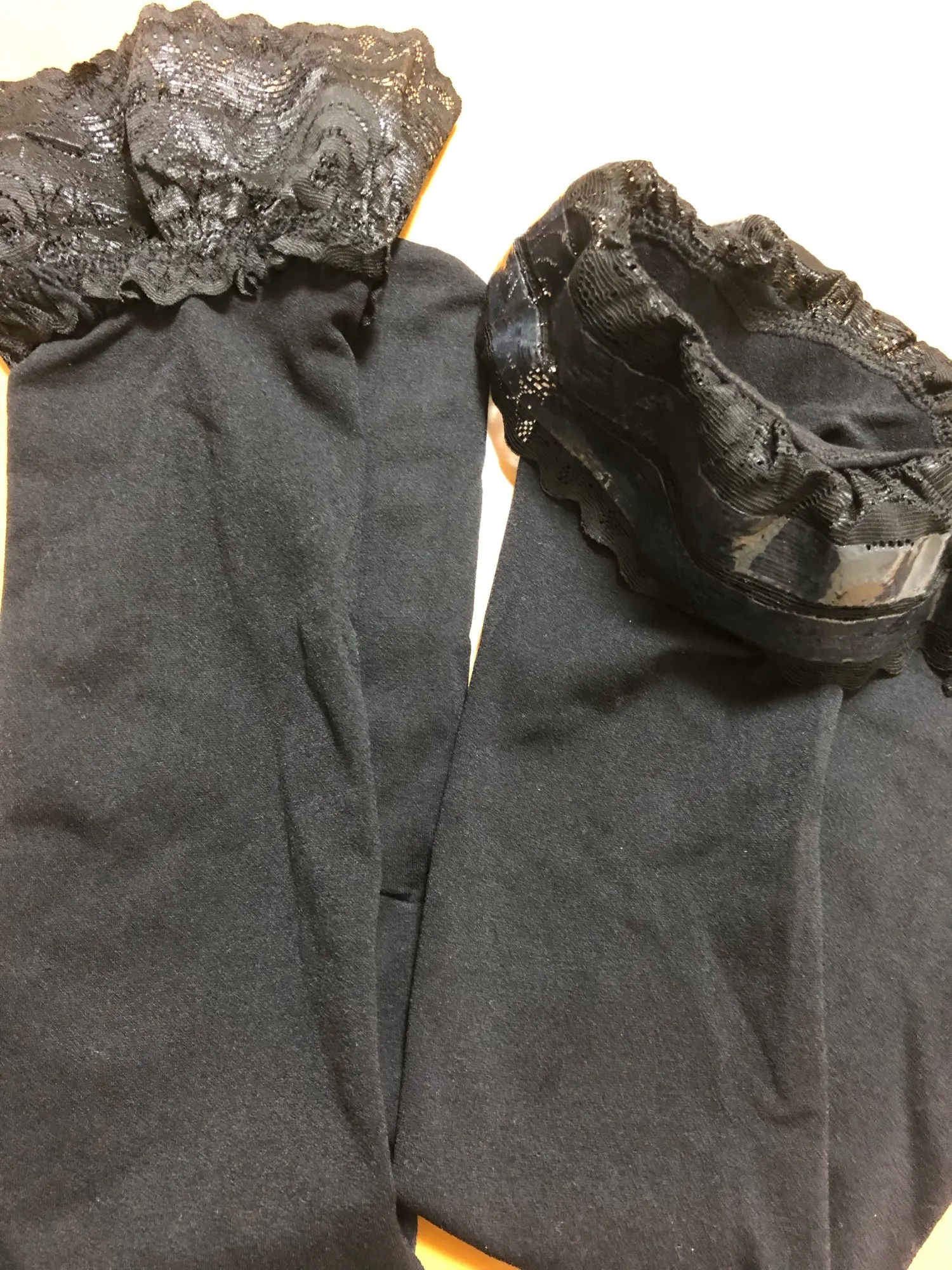 The material is a very dark black, which was what I was hoping for! They also stay up on the thighs well. Shipping was fast!