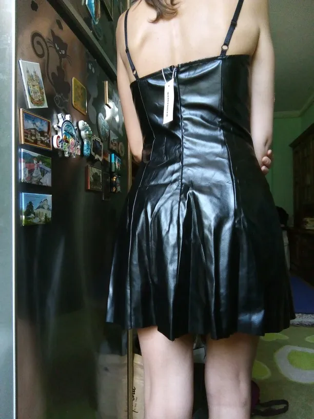 I put on positive reviews. But disappointed. Thin leatherette on the parameters of growth 165. Chest volume 90 (2,5 size), waist 66, hips 94 ordered s, at the waist there is a place, does not fit. On my growth is short. The lower edge of the dress is not trimmed, just cut off. The cup is generally ugly! Recesses are not done correctly. The photo shows. In general, the return.