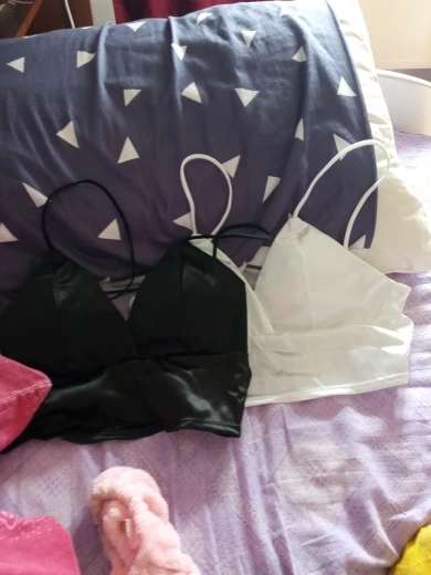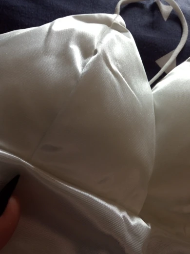 Beautiful top, sewn neatly. There is no lining, so it shines through and is a little cheap. Well, the material itself is shiny, also not very. In the cups there are inserts, without special pushap. I’ll wear it.