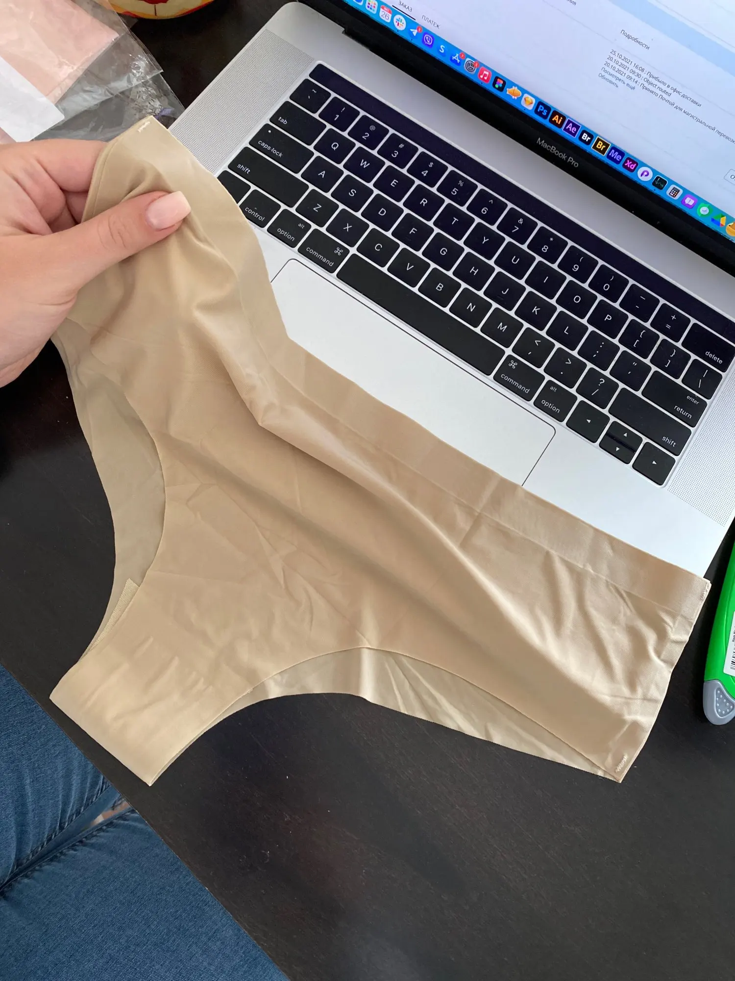 Excellent panties, no foreign smell, made neatly, well glued. On the Body sit perfectly under the clothes are invisible. On lace seams neat threads do not stick out, lace tight